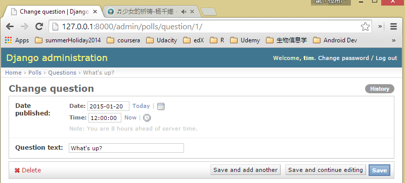 - 本文标题:Django-1-7-3-Tutorial-Part-2-管理站点